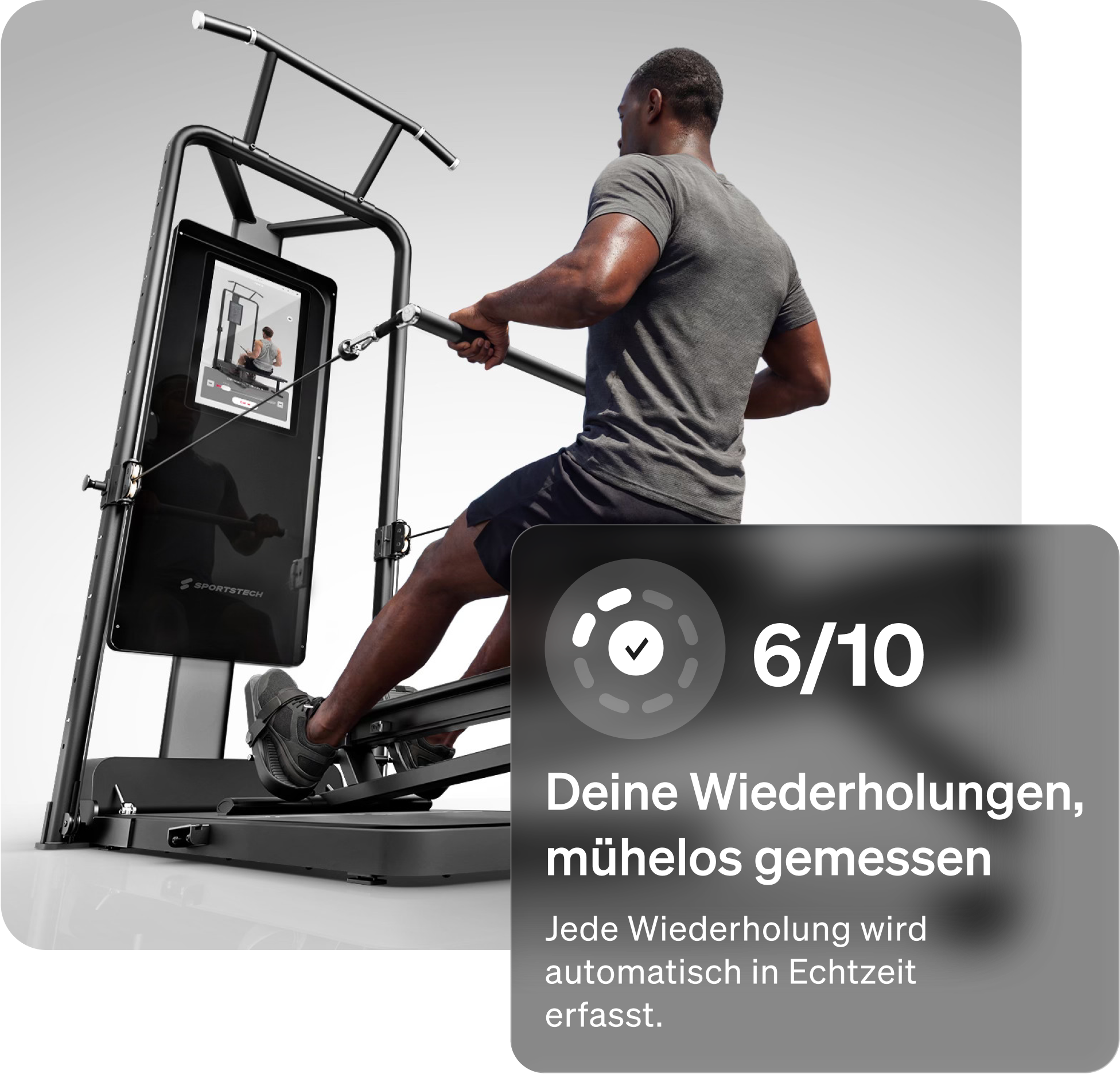 Ja. Basierend auf deiner bisherigen Leistung und deinem Kraftniveau gibt der Sportstech KI Coach intelligente Gewichtsempfehlungen für jede Übung, um Fortschritt ohne Überlastung zu gewährleisten.