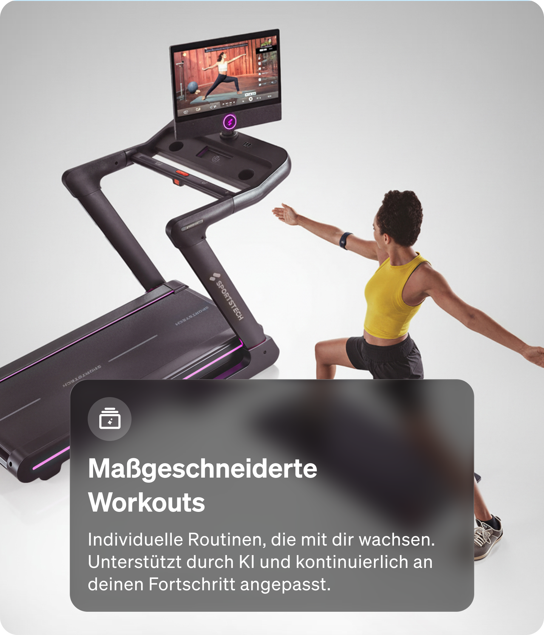 Der Sportstech KI Coach passt dein Training in Echtzeit an deine Ziele, dein Fitnesslevel und deine Leistung an. Statt starrer Pläne erhältst du ein intelligentes Training, das sich mit deinem Fortschritt weiterentwickelt.