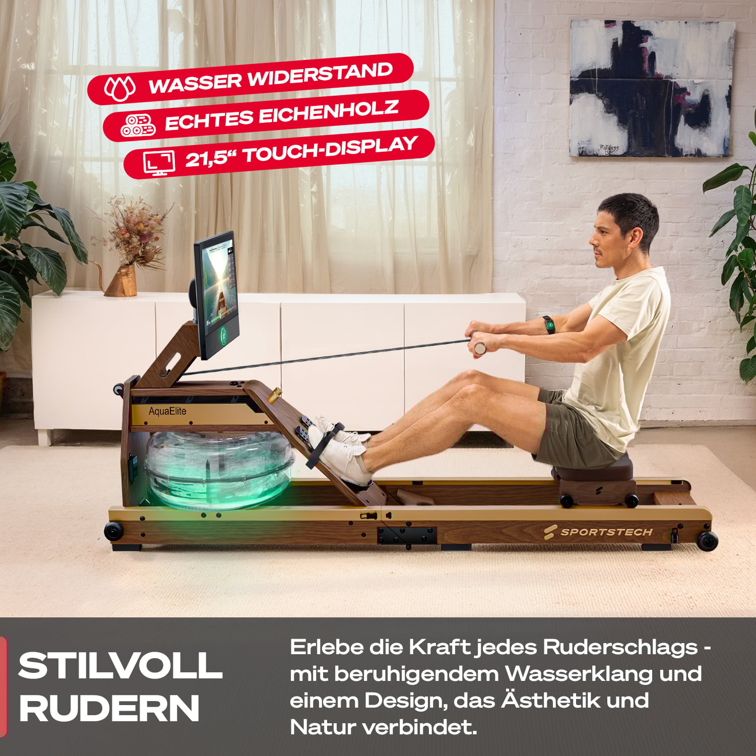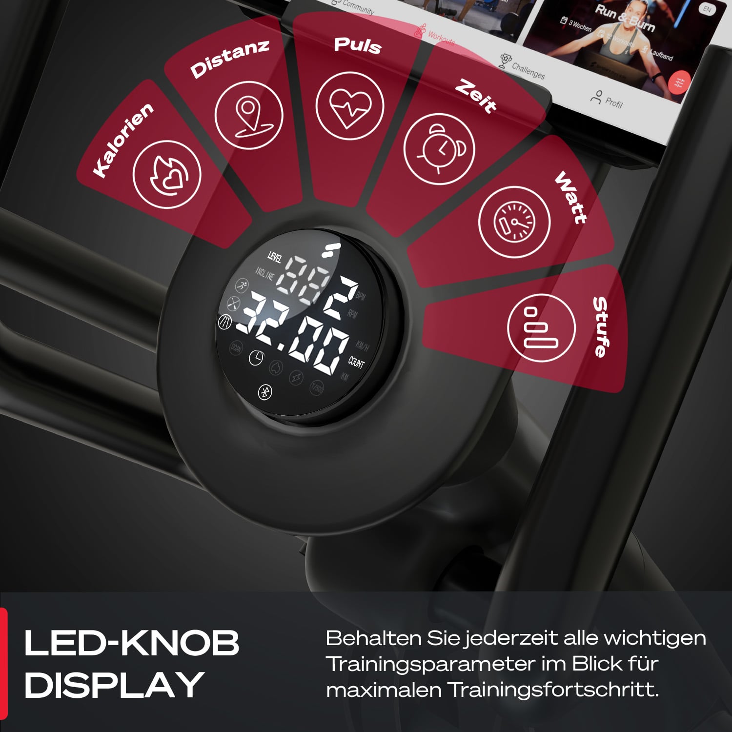 - 21,5" Touch-Display mit Sportstech Live App