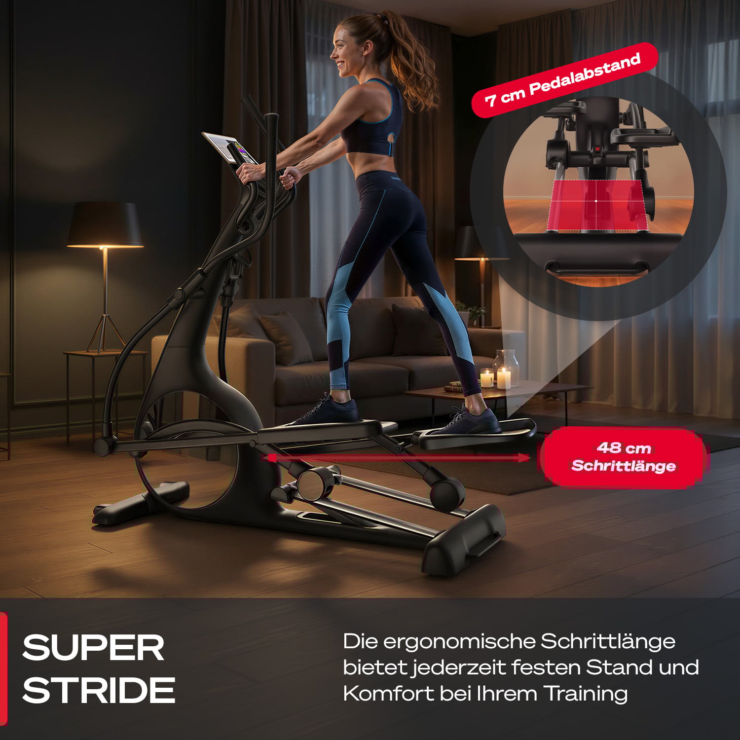 - ergonomischer Komfort mit 48 cm Schrittlänge