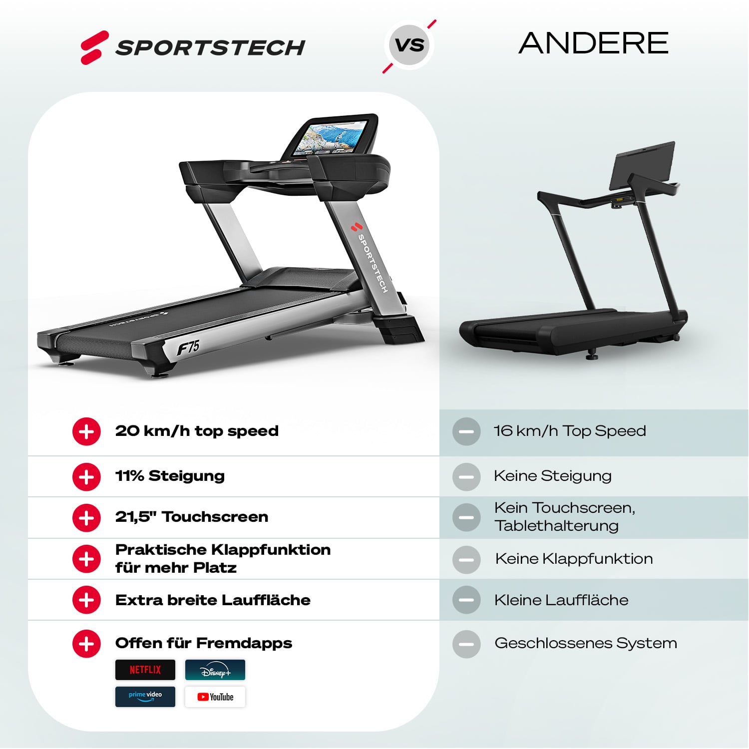 - Integriertes 21,5" Touchdisplay mit Sportstech Live App