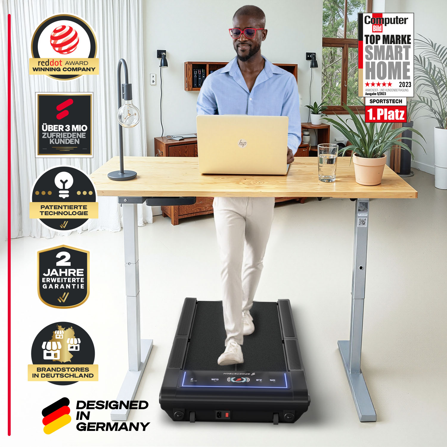 Das sWalk Fold ist ein einzigartiges Walking Pad. Es sticht hervor durch sein edles Design, seine Funktionalität und seine Variabilität. Du kannst es vielseitig einsetzen: Ob unterm Schreibtisch beim Arbeiten oder abends ein paar Schritte gehen vor dem Fernseher. Mit der integrierten Faltfunktion lässt es sich zudem mühelos verstauen und passt in jede Wohnung.