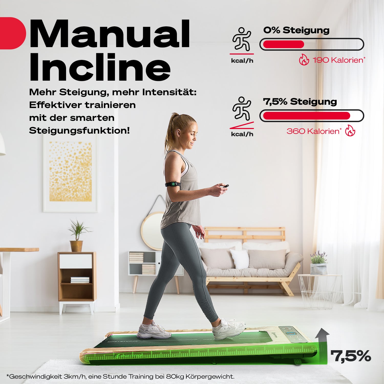 Die Intensität der Nutzung (Geschwindigkeit und Steigung) darf niemals die aktuelle Fitness der nutzenden Person übersteigen.