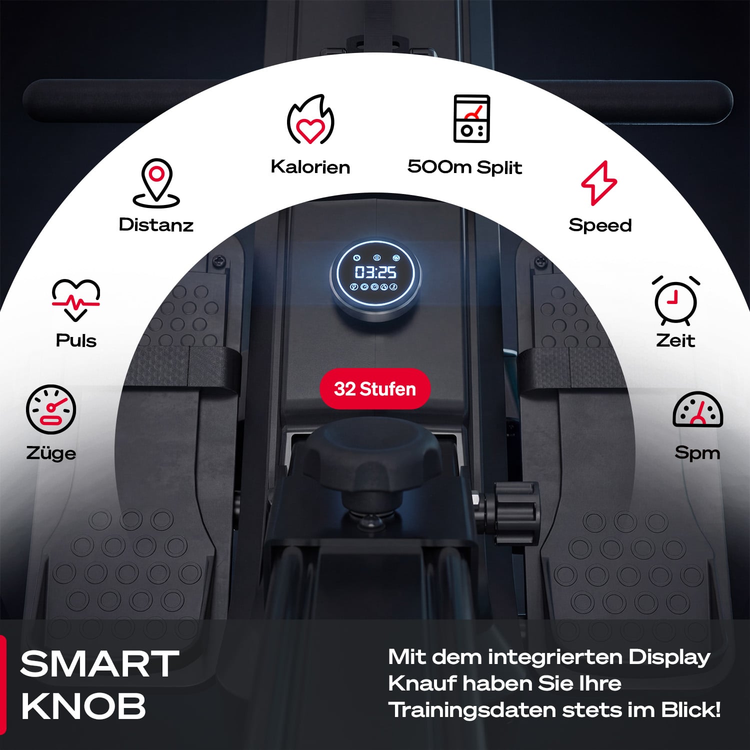 Das Sportstech sRow Lite ist unser innovatives Rudergerät für ein kraftvolles Rudererlebnis zu Hause. Es ist das ideale Trainingsgerät für alle, die smart und effektiv trainieren möchten. Mit dem intelligenten LED Knob Display und dem 24 stufigem, leisem Magnetbremssystem und LED-Beleuchtung bietet es ein motivierendes Trainingserlebnis – direkt bei dir zuhause.