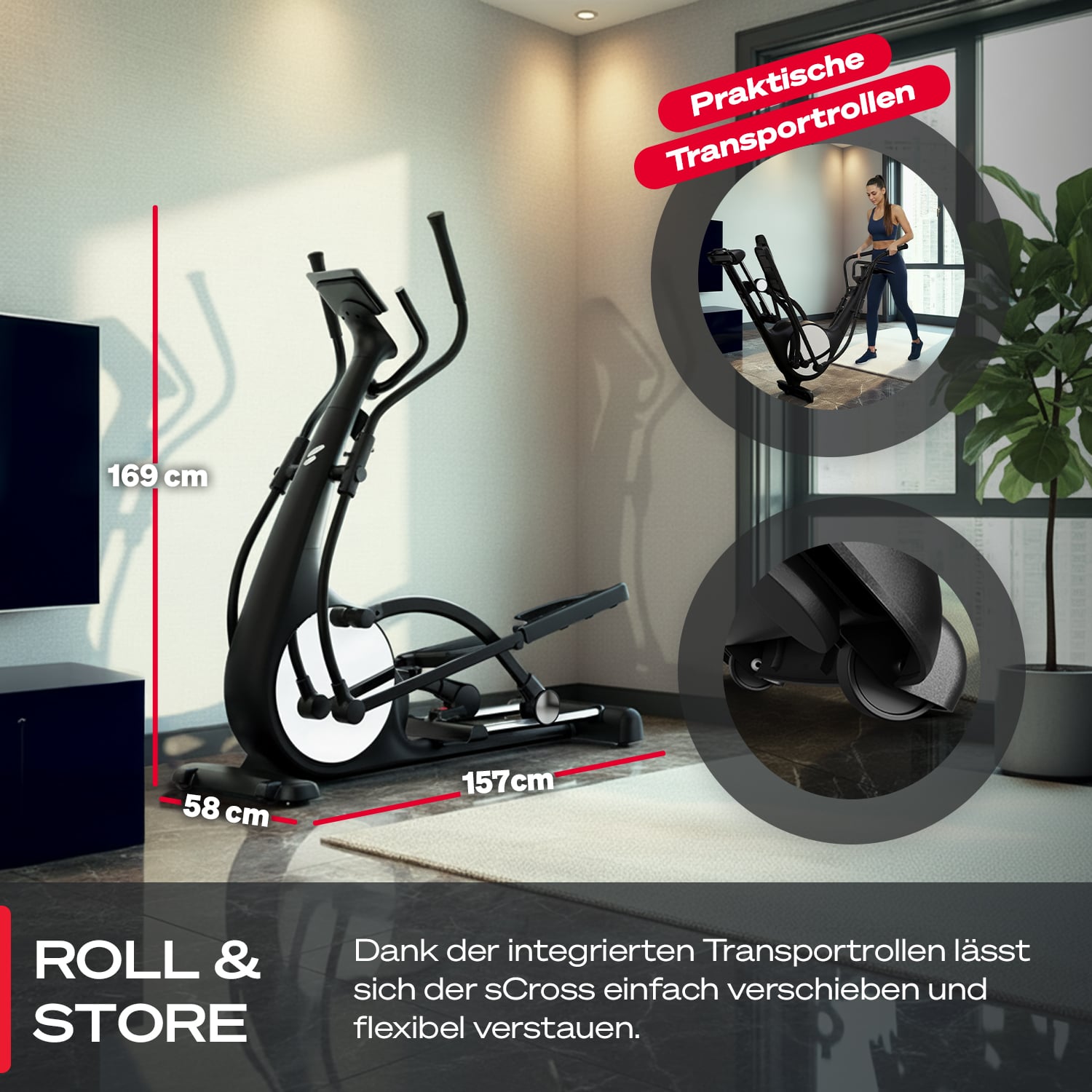 Der sCross verfügt über 32 elektronisch gesteuerte Widerstandsstufen. So lässt sich das Training perfekt an jedes Fitnesslevel anpassen – vom Aufwärmen bis hin zu intensiven Intervallen. Unterstützt wird das Training durch eine 6 kg Schwungmasse, die für einen gleichmäßigen und gelenkschonenden Bewegungsablauf sorgt.
