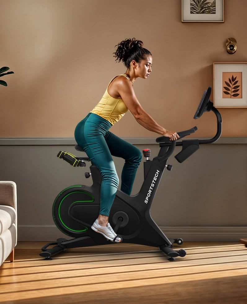 Das Sportstech sBike ist unser innovatives Premium-Speedbike in Studioqualität – für effektives Training zuhause. Es kombiniert Leistungs- und Herzfrequenztraining mit einem immersiven Erlebnis, betrieben über unser eigenes System: Sportstech Live.