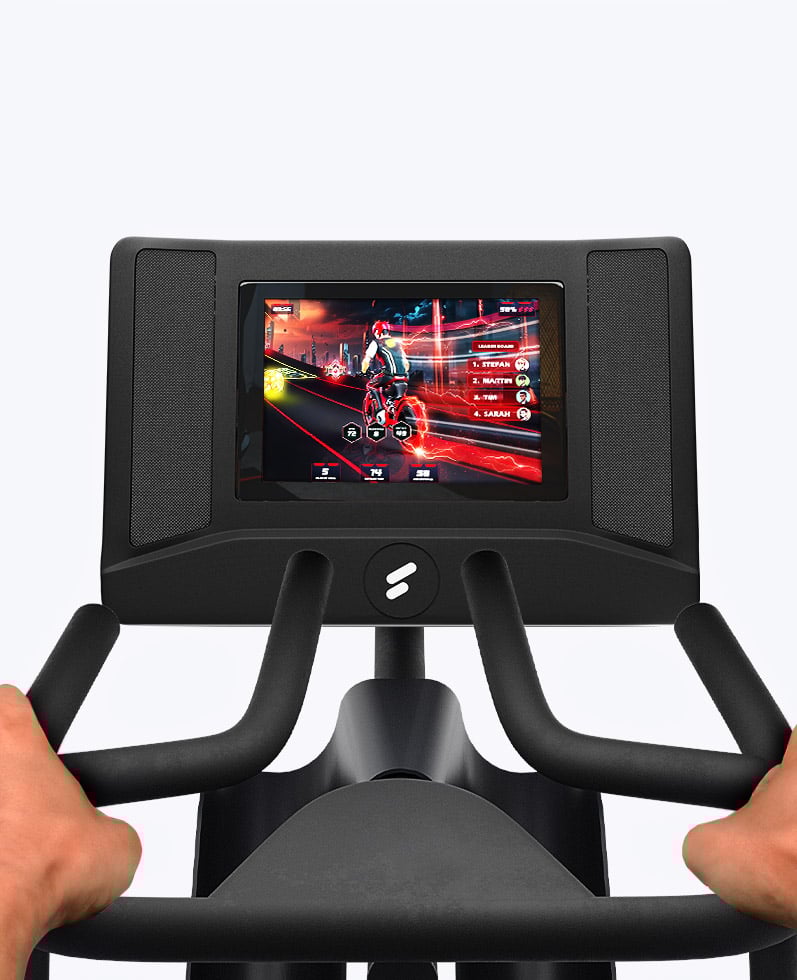 Der integrierte 21,5" HD-Touchscreen bietet dir Zugriff auf Workouts, smarte Trainingsmetriken, Challenges, Gamification, Community-Features und Streaming-Dienste wie Netflix und YouTube.