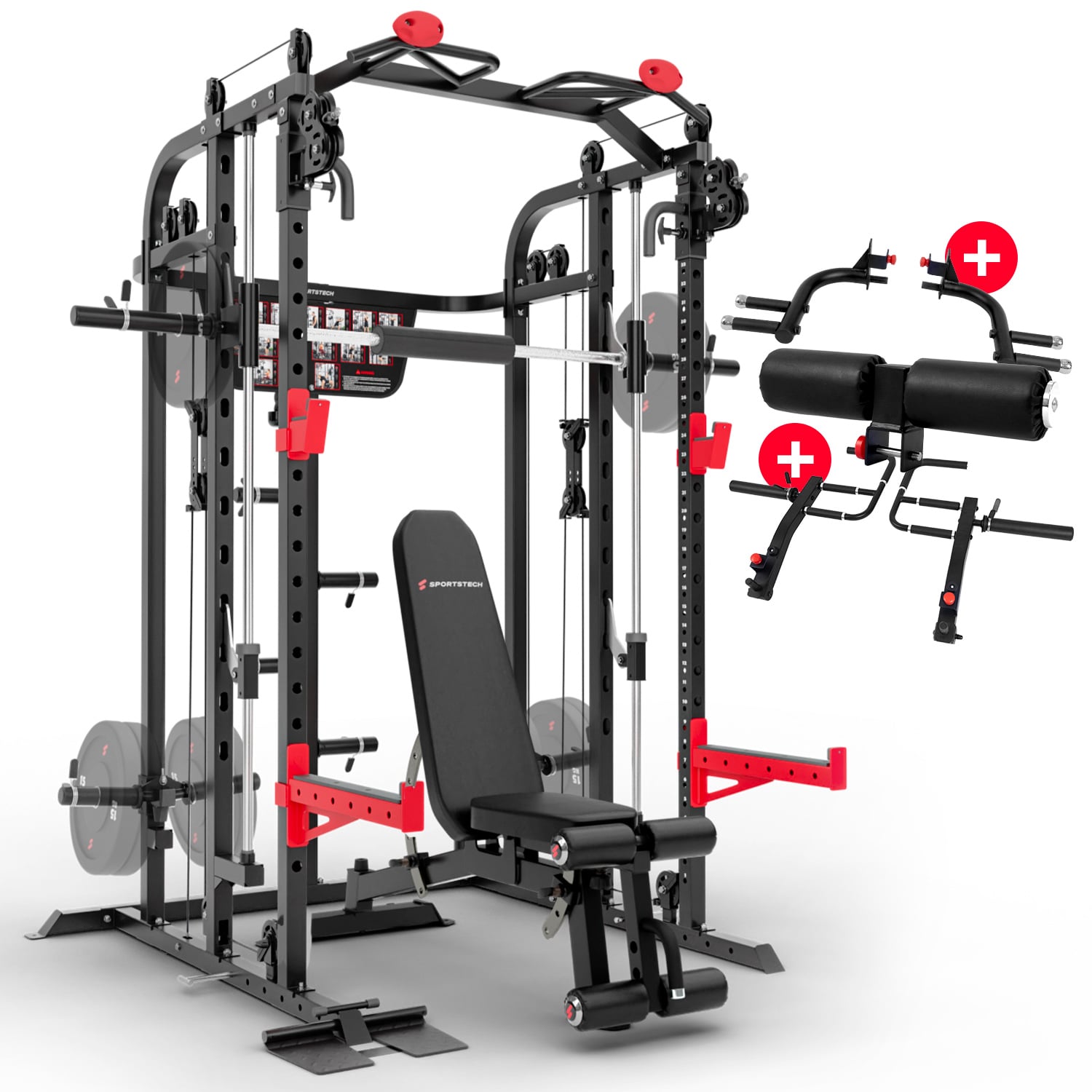 SXM150 Smith Machine + BRT700 Hantelbank + Beinhalterung + Jammer Arm+ Dip Bar