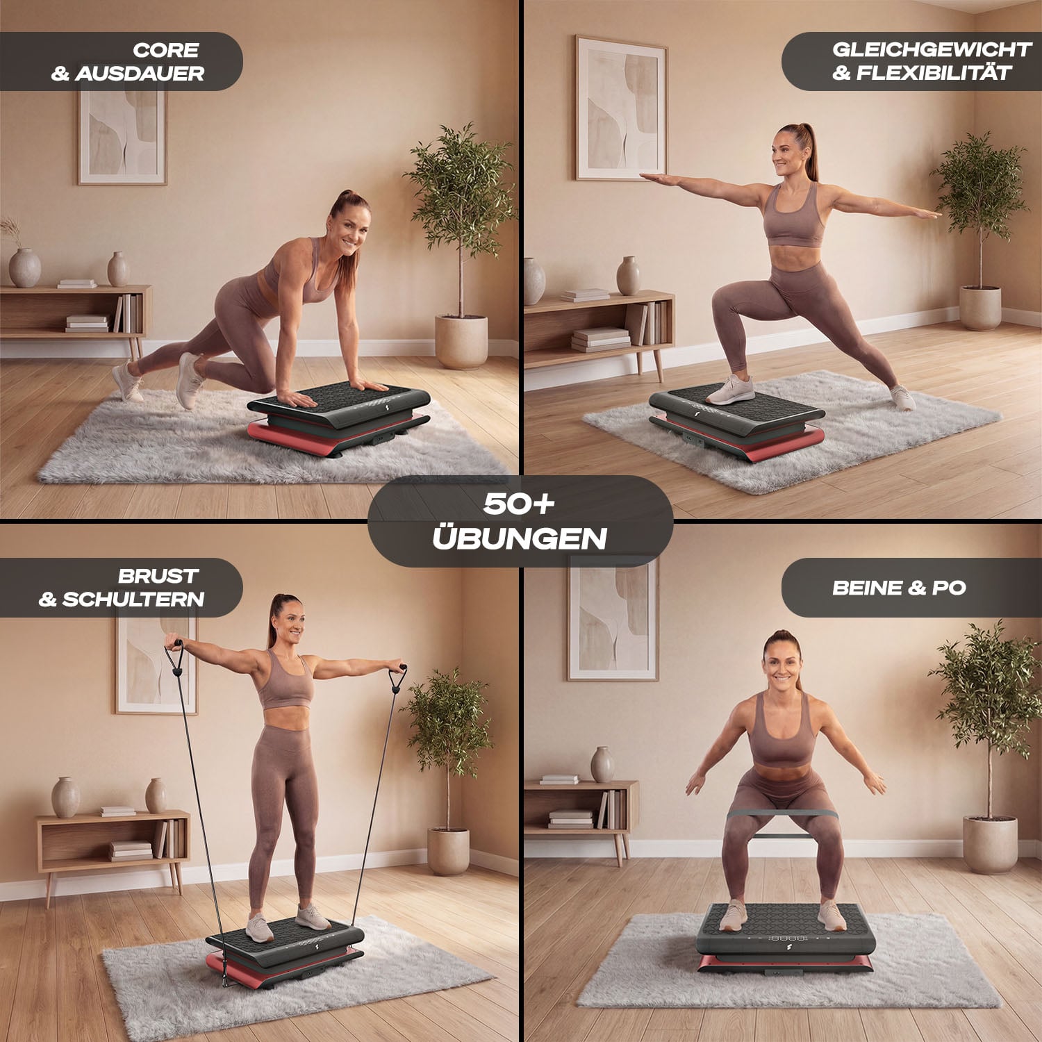 Im Lieferumfang der sVibe Lite sind eine Fernbedienung sowie Widerstandsbänder und Power Ropes enthalten, um das Training vielseitig zu gestalten.
