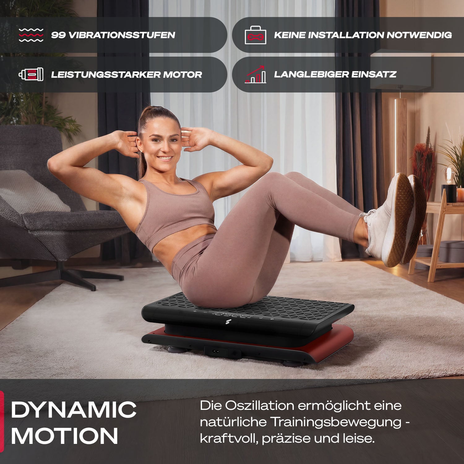 Die sVibe Lite ist eine 2D-Vibrationsplatte mit seitenalternierender Auf-und-Ab-Bewegung, ähnlich einer Wippbewegung. Diese Schwingungen imitieren den natürlichen Bewegungsablauf beim Gehen und werden über die Standfläche auf den Körper übertragen. Dadurch kommt es zu einer gleichzeitigen Aktivierung mehrerer Muskelgruppen, insbesondere der Bein-, Rumpf- und Armmuskulatur. Die sVibe Lite eignet sich somit zur gezielten Muskelaktivierung, zum Fettabbau und zur Stärkung der Ausdauer für ein effektives Ganzkörpertraining Zuhause.